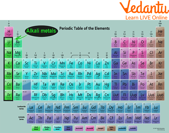 Periodic Table showing Alkali Metals