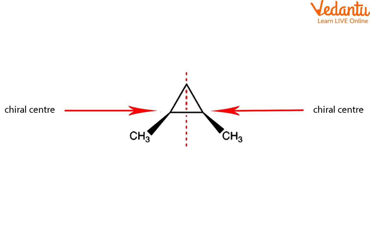 As noted previously, a meso compound must have at least two chiral \[s{{p}^{3}}\] hybridized atoms and at least one inner plane that divides the molecule into two mirror images. Tetrahedral centres are present, which prevents the molecule from being planar. An achiral compound won't rotate planar polarized light even if it just contains one element of symmetry. Meso compounds lack optical activity because of this.