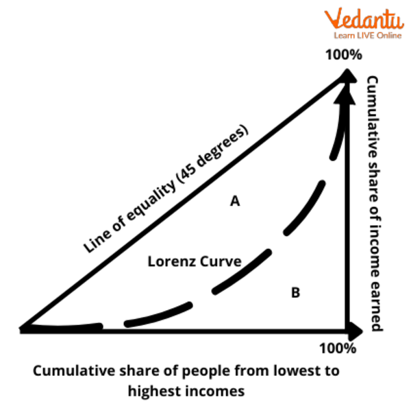 Gini Coefficient: This is the most popular measure of income inequality. This coefficient is obtained from the Lorenz curve. This curve shows the percentage of total income earned by the cumulative percentage of the population.