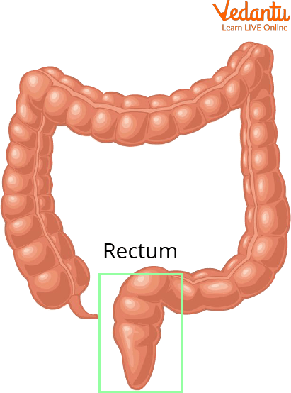 6. Rectum: It is a reservoir that holds stool or faecal matter till the time it is passed out from the body.