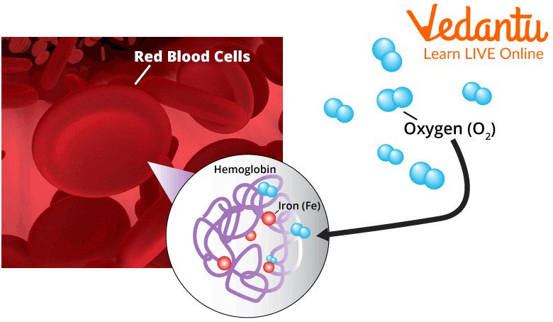The Red Blood Cells have an iron containing pigment named Haemoglobin. The haemoglobin is a very important molecule since it plays an important role in the transport of oxygen, the molecule essentially carries the oxygen molecule from the lungs to the other cells of the body and also carries the carbon dioxide from the cells and to the lungs from where it is discarded from our body.