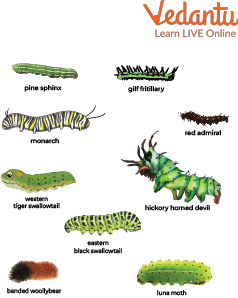 A caterpillar comes from the eggs laid by the female butterfly. It grows at a faster rate. After some time, a caterpillar comes out by splitting the skin. The process is known as moulting. This process occurs four to five times. Some caterpillars eat up the old skin that they have left out.
