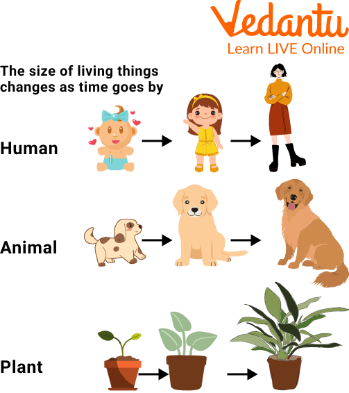 Living Things Grow: We often see in our surroundings small plants growing into trees, newborn babies turning into a child and then into an adult. Hence, living things have the ability to grow.