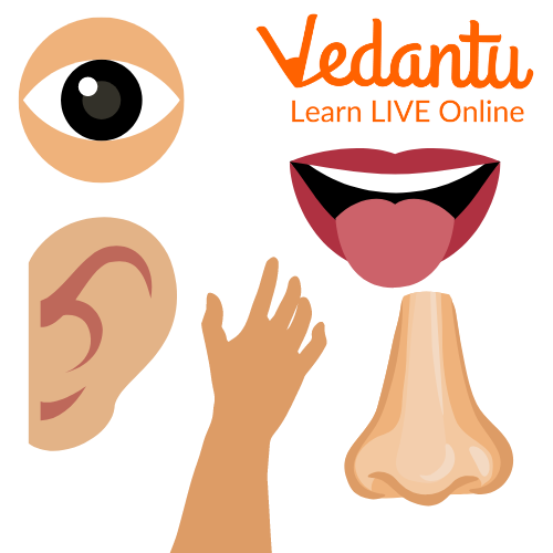 Sense organs perceive sensations. There are five sense organs. These include eyes, ears, nose, tongue, and skin. All sense organs have their own functions like eyes help in seeing, the nose helps us smell, the tongue gives the sense of taste and the skin gives us the sensation of touch. We can feel any type of touch because of our skin. Skin also works as a protective organ.