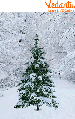 As the plants growing in snowy regions are Conical in shape and therefore are named coniferous plants the cone shape of the plant is an adaptation to ensure its survival in extreme conditions in mountains covered in snow.