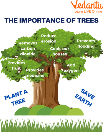 Trees are very important for all living beings. They give us oxygen to breathe, which is essential for life. They also provide us with delicious fruits to eat, wood for making furniture, and shade to rest under on a hot day. For animals like birds and squirrels, trees are a home and a safe place to live.
