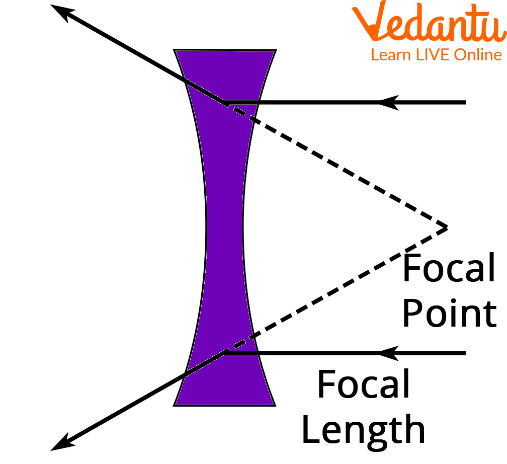 - Concave Lens (Diverging Lens): This lens is thinner at the centre and thicker at the edges. It spreads out (diverges) parallel light rays, making them appear to originate from a single point behind the lens.
