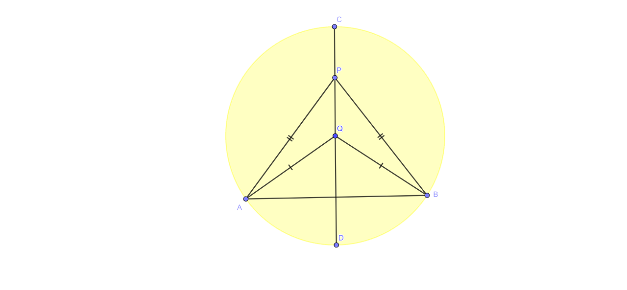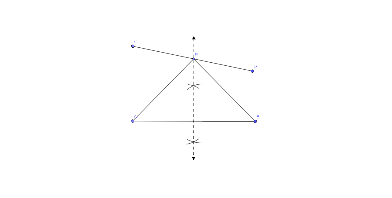 C and D are equidistant from P. P is located on CD's perpendicular bisector.