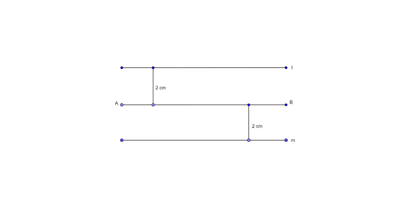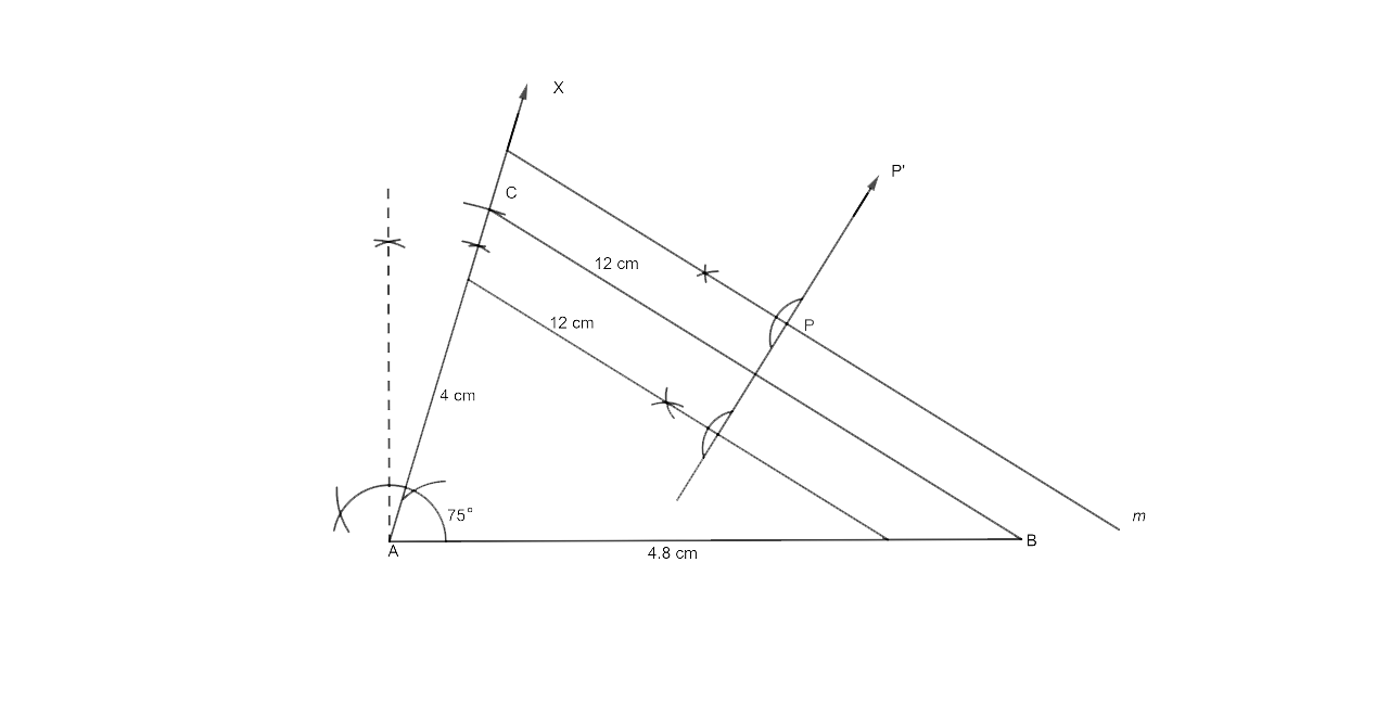 v) At a distance of 5 cm, a line m is drawn parallel to AB.