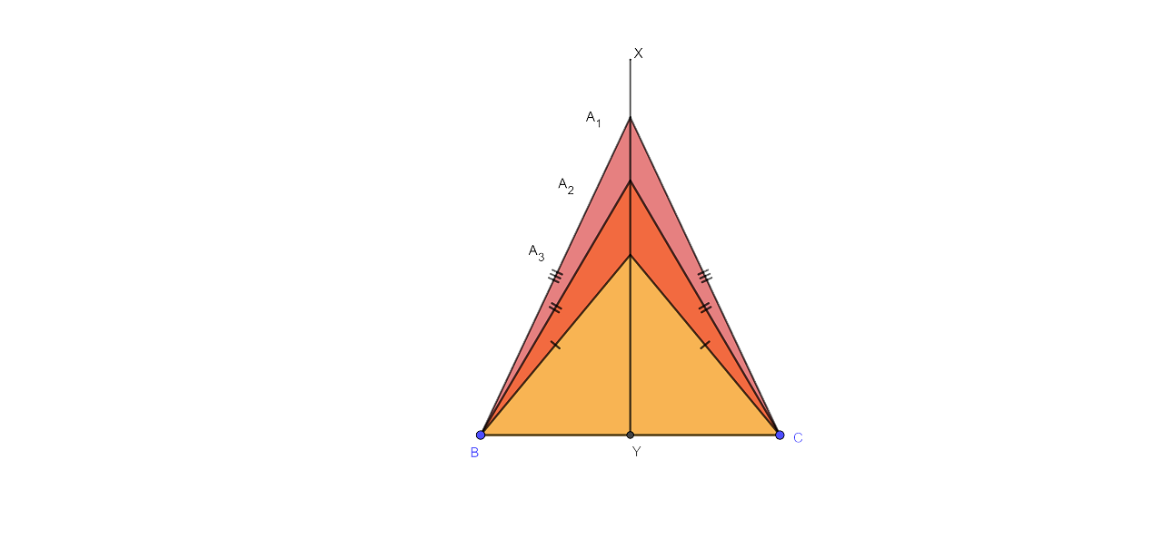 (vii) Then triangle QBC and triangle ABC have the same area. m is the point through which any triangle with base BC will have the same area as triangle ABC.