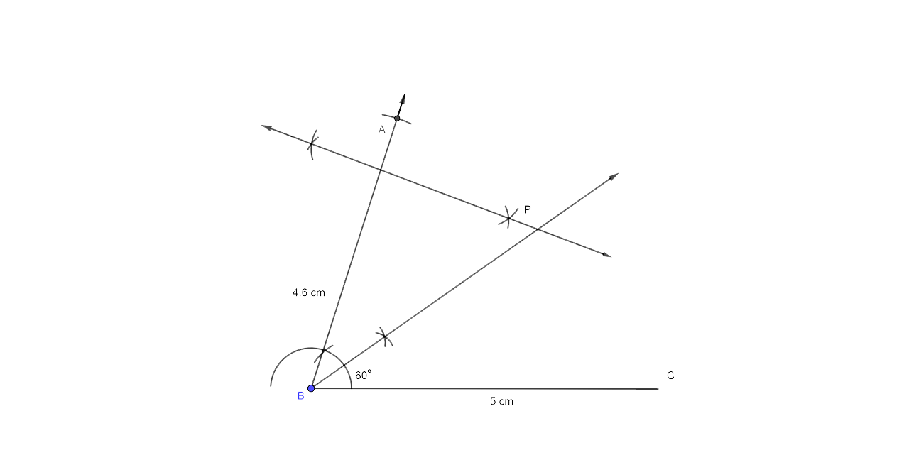 (2) Cut off BA = 5 cm at B by drawing CBP = 60° from BP.