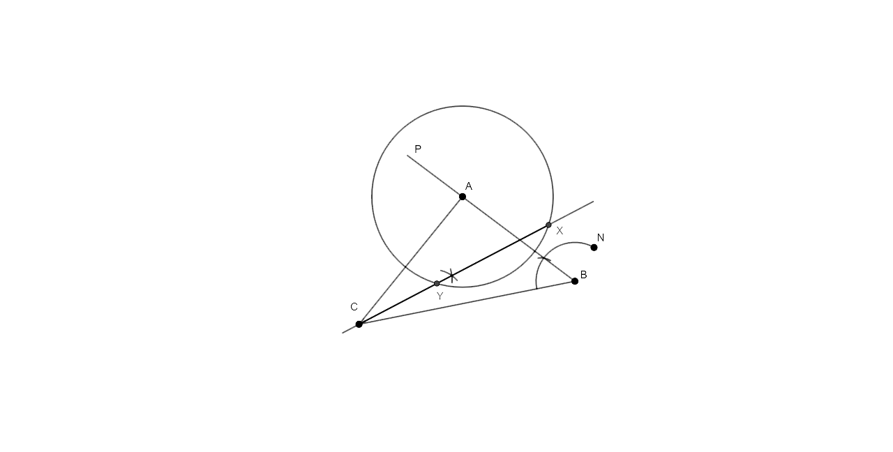 (6) The circle is sliced at X and Y by the angle bisector shown above. These are the spots that are 3.5 cm apart from A, as well as equidistant from AC and BC. XY is 5.2 centimeters long, according to the measurements.