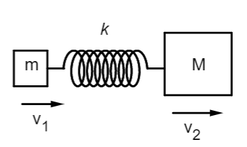 Note: We know that the force is the change of the linear momentum of the objects in a system. Since, there is o external force acting horizontally on the system consisting of two blocks and a spring, the linear momentum will be zero. Hence the equation be like, $m{v_1} - M{v_2} = 0$. This concept leads to the concept of conservation of linear momentum.