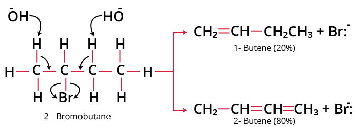 According to the Saytzeff Rule, the main product must be a disubstituted alkene that is 2-butene rather than the monosubstituted alkene, 1 – butene.