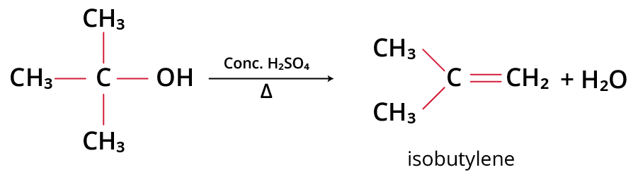For example, t-alcohol when heated with concentrated H2SO4 gives isobutylene.