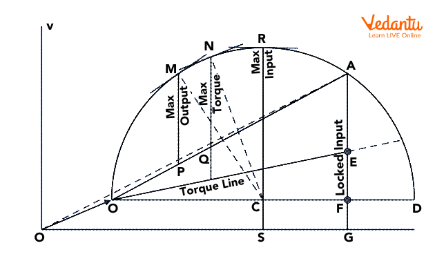 - Output line: A line drawn from the origin to a point representing the output power at a certain slip