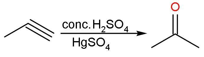 (A) Conc.${{\text{H}}_{2}}\text{S}{{\text{O}}_{4}}$: Propyne reacts with concentrated sulphuric acid in presence of mercuric sulphate to form acetone in equilibrium with its tautomeric structure. The reaction is