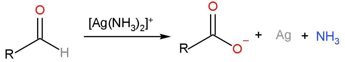 Note: Aldehydes are oxidised by diamine silver ions $\left[ \text{Ag}\left( \text{N}{{\text{H}}_{3}} \right)_{2}^{+} \right]$ or ammoniacal silver nitrate solution to carboxylic acids. This reagent is also known as Tollen’s reagent. The reaction forms out of a silver mirror as a product to confirm the presence of aldehydes. The reaction is