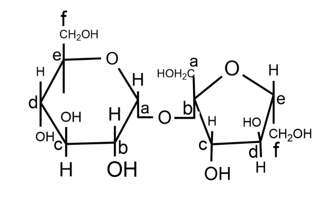 -In this molecule, the ‘a’ carbon atom of glucose and ‘b’ carbon atom of the fructose molecule is adjacent to oxygen atoms in the cyclic structures, hence they are anomeric carbons.