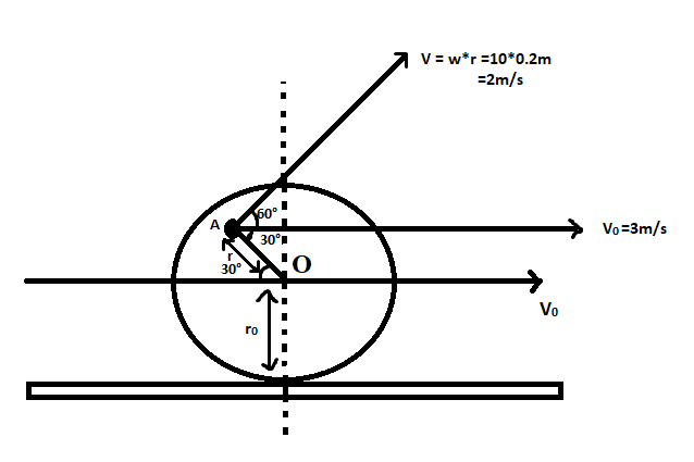 Where ${\text{ }}r{\text{ }}$ is the radius of the wheel and ${\text{ }}{\omega _0}{\text{ }}$is the angular velocity