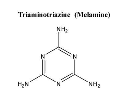 Melamine is not a polymer but a heterocyclic organic compound which is a colourless crystalline solid. Its chemical structure is given below: