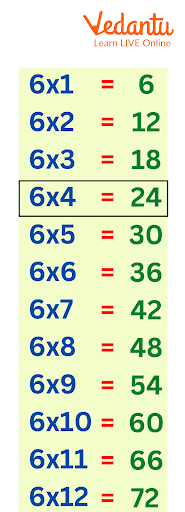 To determine that 6 times 4 are 24, we must mentally read the multiplication tables of 6.