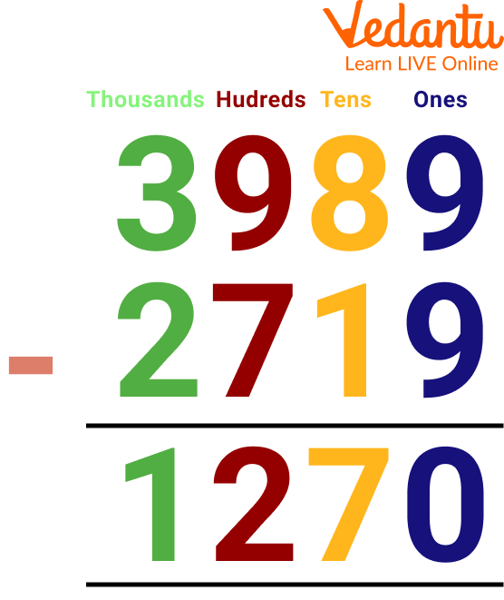 Example: Subtract 2719 from 3989.