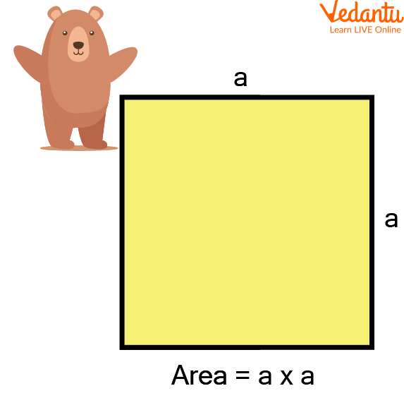 If ‘a’ is the side of the square, then its area is given by ${a}^2$.