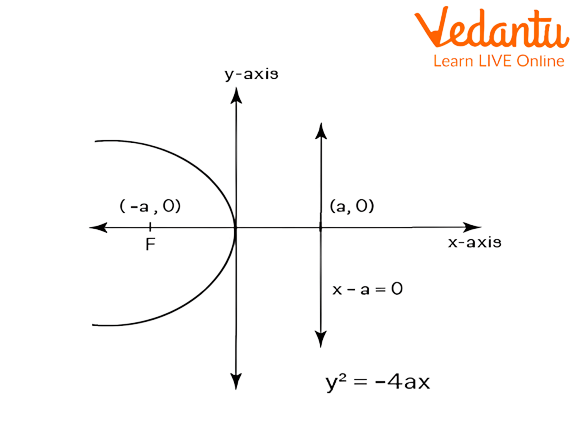 The equation of the left parabola is ${{y}^{2}}=-4ax$. The graph of the upward parabola is as follows,
