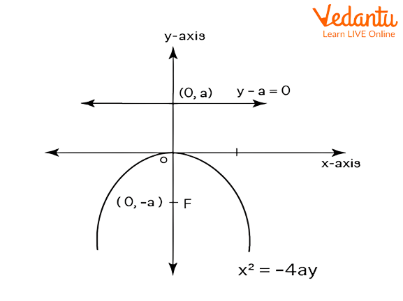The equation of left parabola is ${{x}^{2}}=-4ay$. The graph of the downward parabola is as follows,