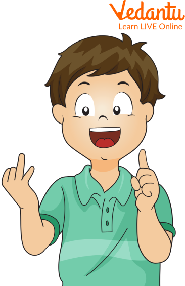 Ans: Here, from the above image, we can see that a boy is showing some numbers with his hand. Here on the left side, he is showing 2 fingers, so keep the count as 2. Now on the right side, he is showing 1 finger. i.e., keep the count as 1. Hence, the total sum for this will be: