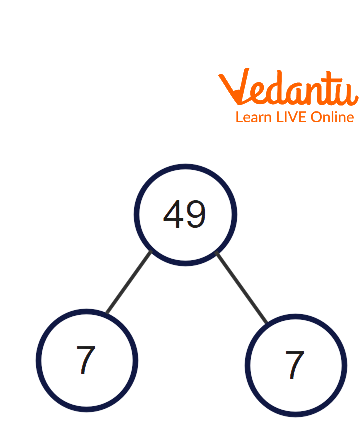 Ans: Factor trees represent the factors of a number, especially its prime factorization. Each tree branch is divided into factors. The end of the branch in the factor tree must be a prime number because the only two factors are itself and one, so the branch stops. We should also remember that 1 is not a prime number; thus, it will not appear in any factor tree. We know that the prime factorization of 49 is \[7\times 7\], where 7 is a prime number.