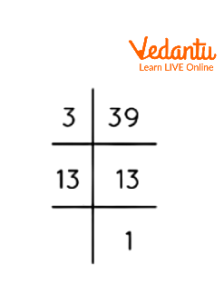 Thus, we get 1 at the end of this division method, and we can’t go on with the division approach. Hence, the prime factorization of 39 is \[3\times 13\], where 3 and 13 are prime numbers. A number and a counting number are known as a multiple of the original number. So, the multiples of 39 are 39, 78, 117, 156, …