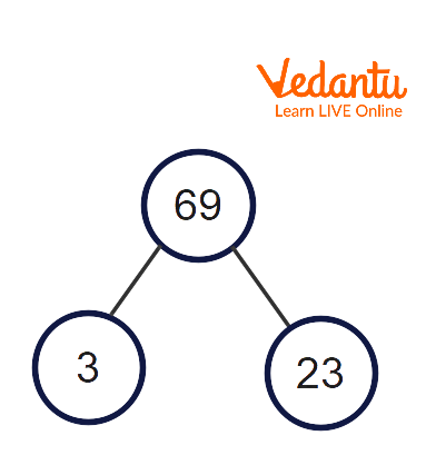 We know that the prime factorization of 69 is \[3\times 23\], where 3 and 23 are prime numbers. See its prime factor tree below.
