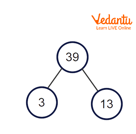 Factor trees represent the factors of a number, especially its prime factorization. Each tree branch is divided into factors. The end of the branch in the factor tree must be a prime number because the only two factors are itself and one, so the branch stops. We know that the prime factor of 39 is \[3\times 13\], where 3 and 13 are prime numbers. See its prime factor tree below.