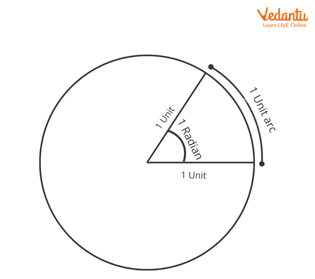 Given a circle of radius one unit, consider an arc of length one unit. The angle subtended by the arc at the center of the circle is one radian. So, Radian Measure is a unit of measure of the angle.