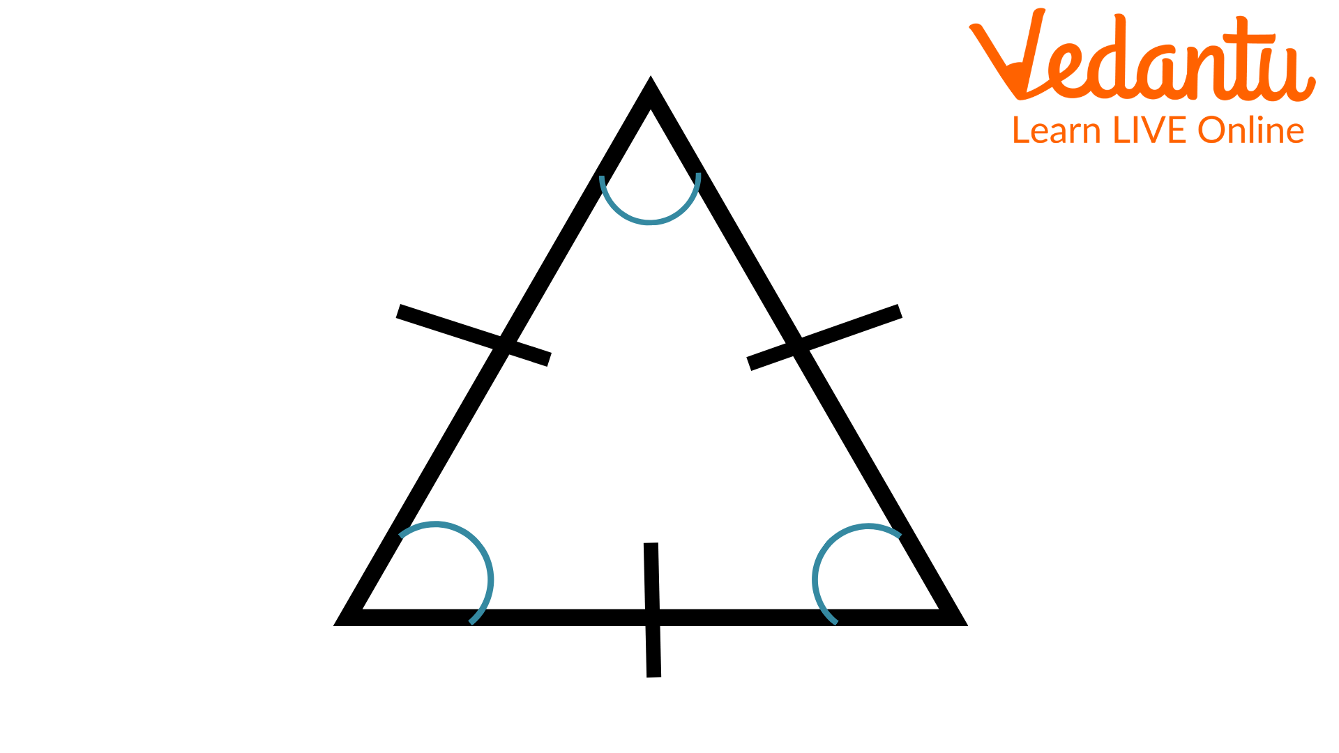 Equilateral Triangle: In an equilateral triangle, all sides are of equal length and each angle is 60°. The figure of an equilateral triangle is given below.