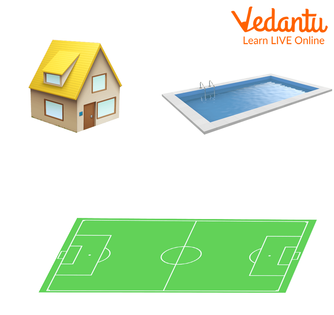We use square feet, square yard, and square metres for measuring big spaces like the area of the garden, house, fields, etc.