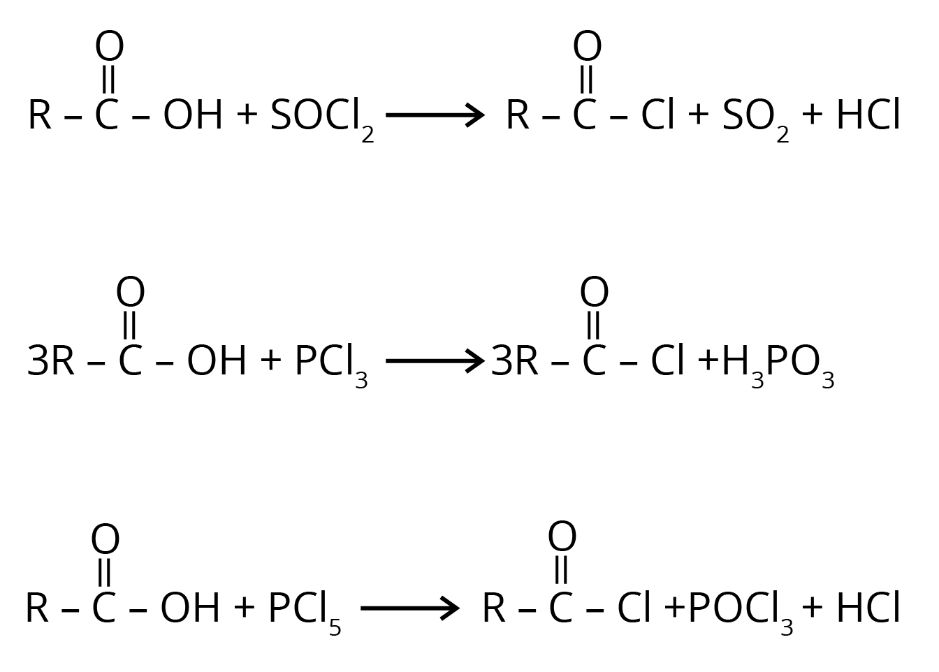 2. Carboxylic acid reacts with halogenated compounds and forms acid halide.
