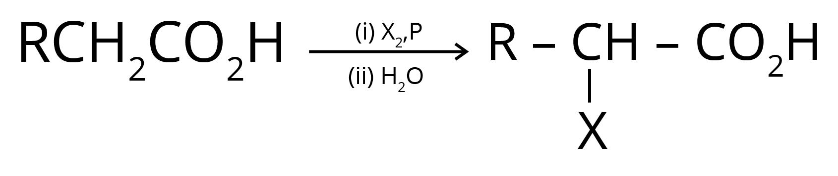 4. Hell Volhard Zelinsky Reaction- Aliphatic carboxylic acids react with Br2 or Cl2 in presence of phosphorus (or phosphorus halides) to give haloacids.