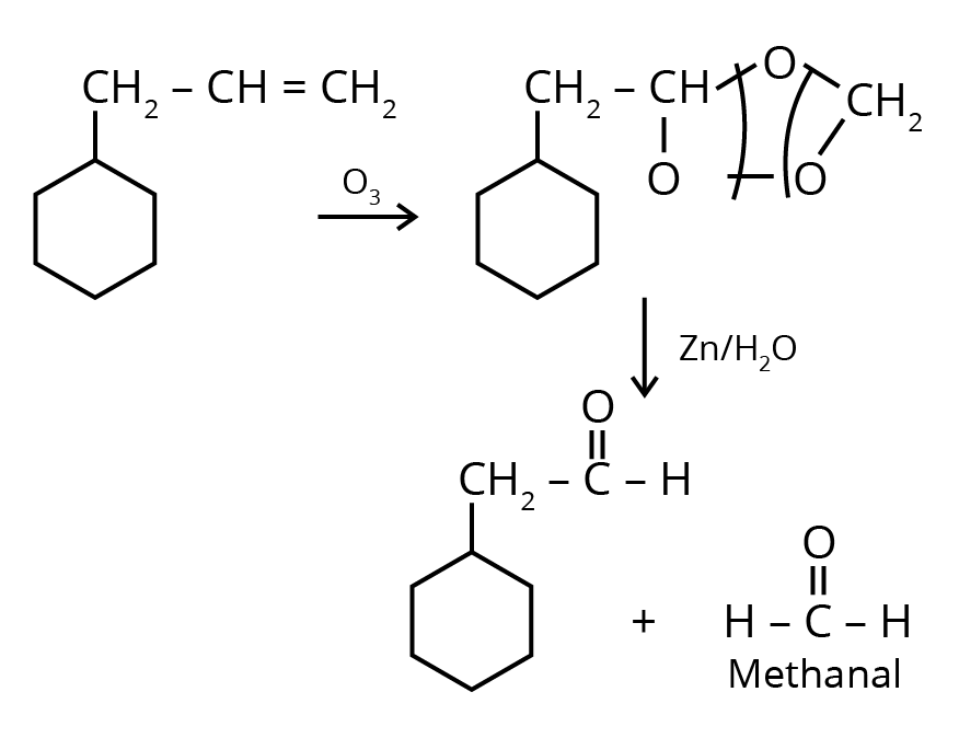 Trick: The given reaction is an ozonolysis reaction. The trick to solve this question in less time is just break the double bond and attach oxygen with the double bonded carbon molecules.