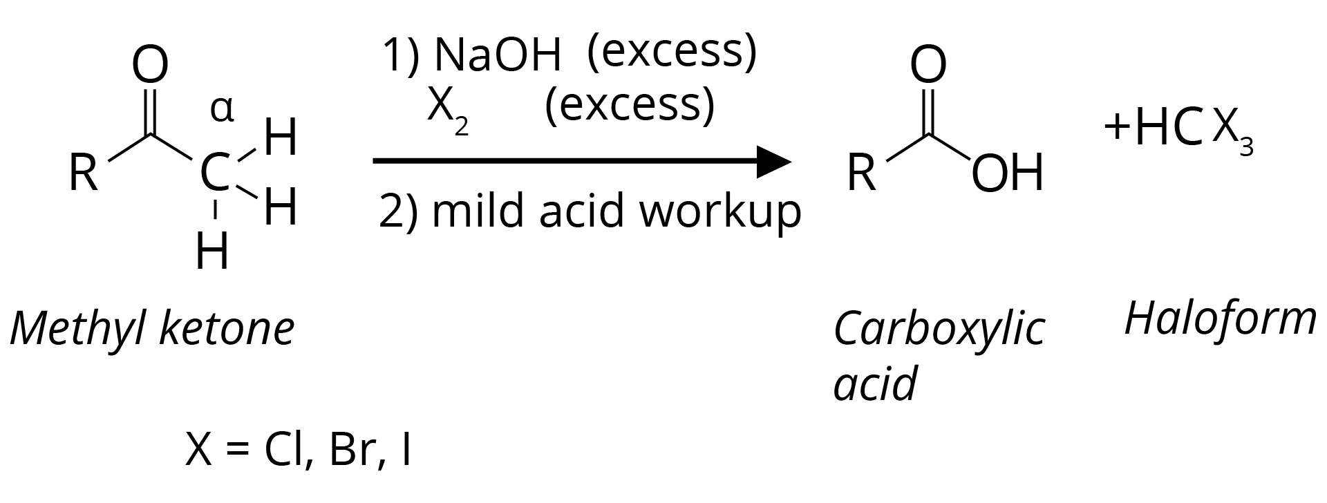 CH3COR are readily oxidized by NaOI (NaOH + I2) to iodoform, CHI3, and RCO2Na.