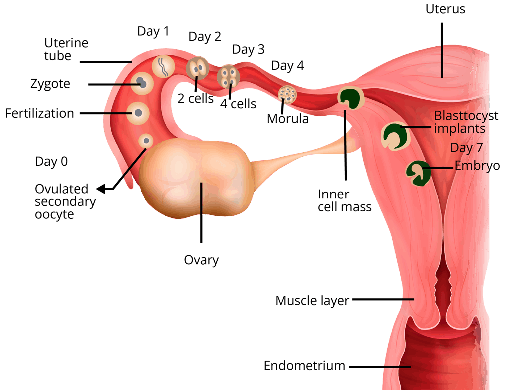 Implantation is defined as the adherence of a fertilised egg to the surface of the uterus wall. It is important for providing a suitable environment for further development inside the female body. It occurs after the 7 days of fertilisation.