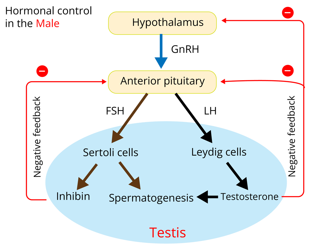 These are responsible for the production of sperms and the male-specific hormone such as testosterone (the main hormone that regulates the male-specific characters as well as the production of male gametes such as sperms).