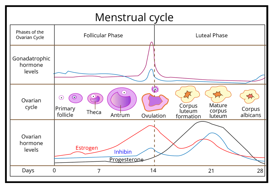 4. Luteal Phase: It is the postovulatory phase where the fate of the corpus luteum is decided. If fertilisation happens, pregnancy starts. If fertilisation doesn’t occur, it marks the onset of another cycle.