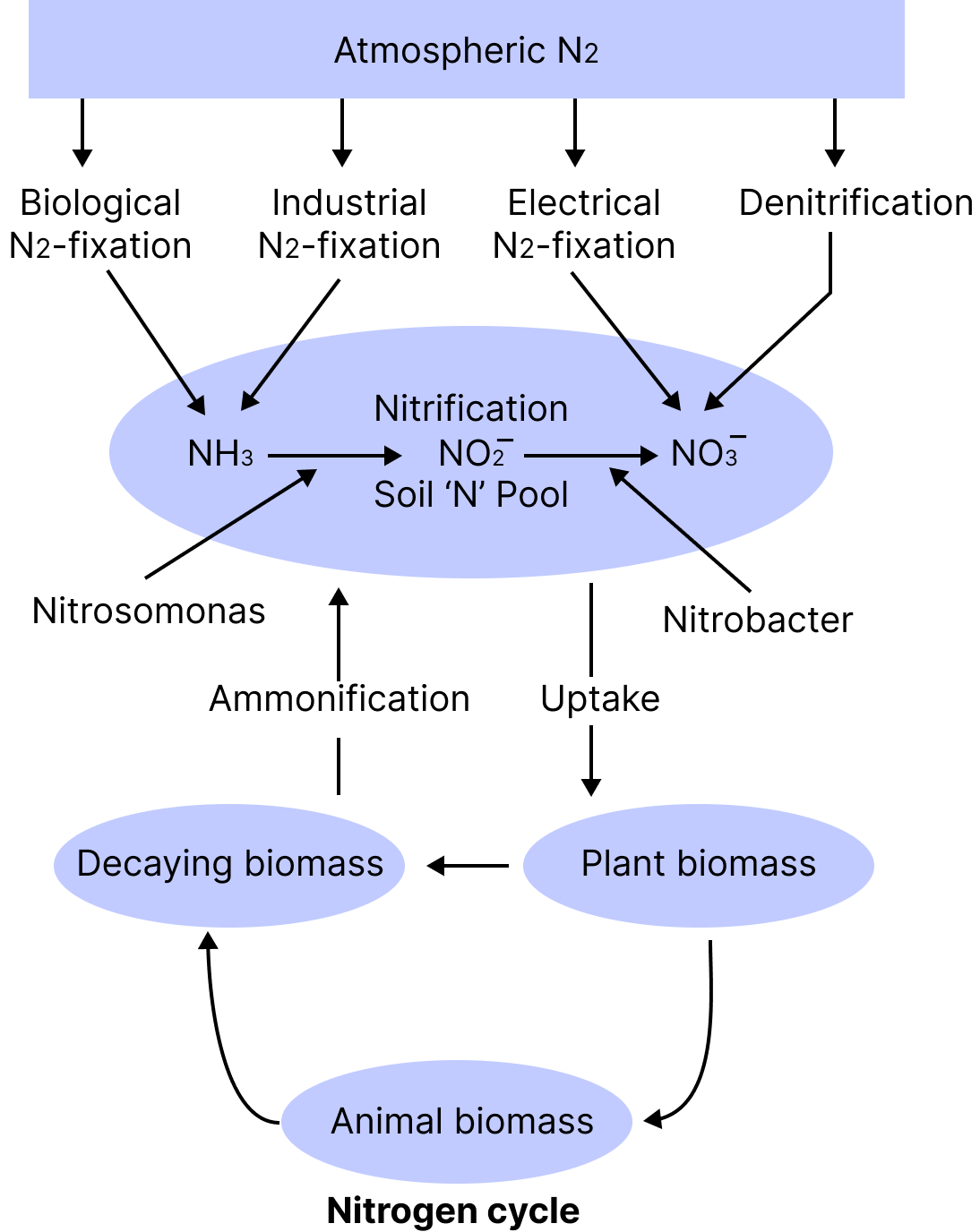 These are nutrients required by plants in larger quantities. They include-Nitrogen (N)- A key component of proteins, nucleic acids, and chlorophyll, nitrogen is essential for plant growth. It helps in the synthesis of important compounds like amino acids and enzymes, and its deficiency leads to impaired growth, yellowing of leaves, and stunted development.