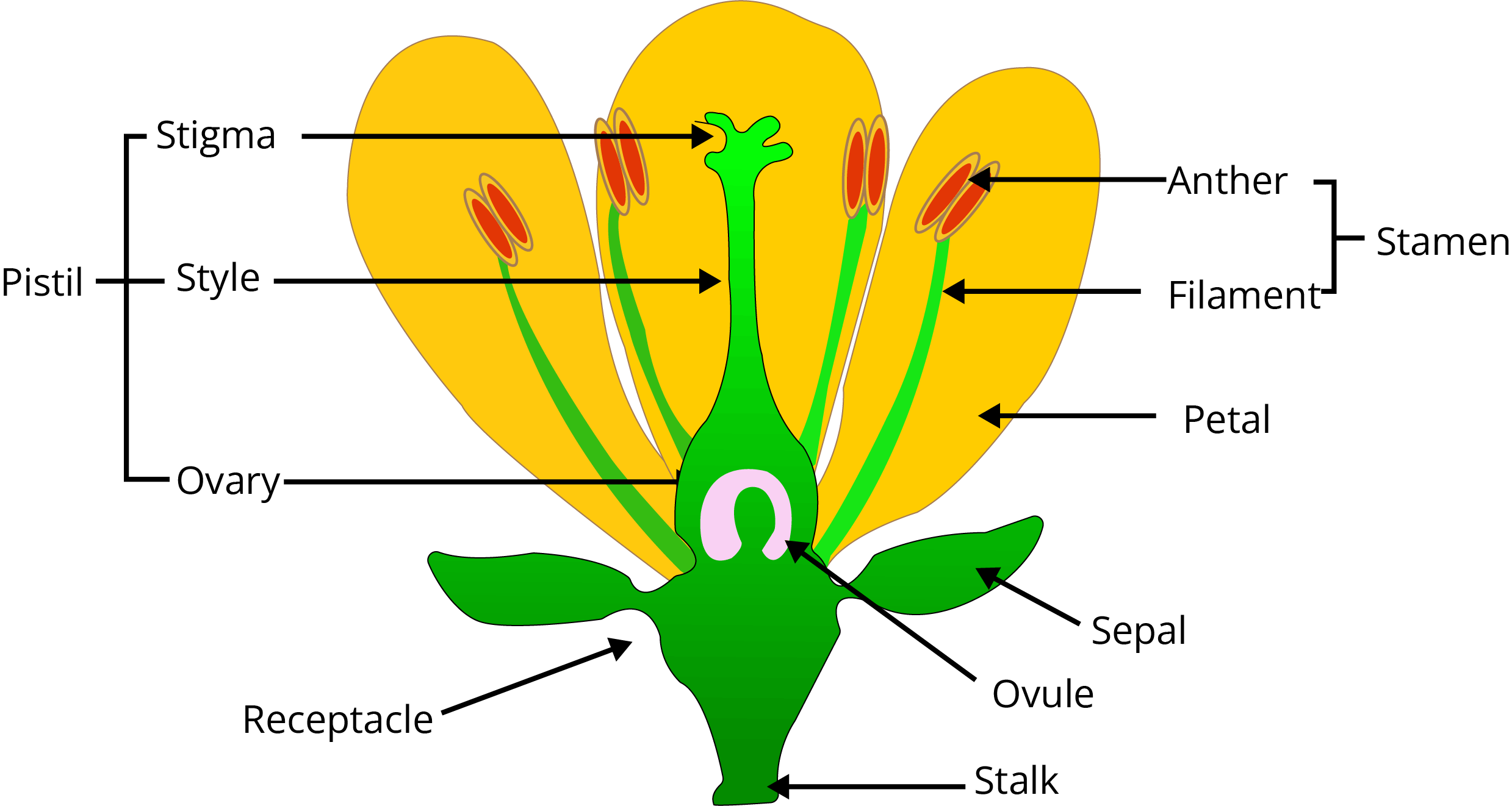 It is the reproductive organ of the plant that gives rise to the seeds. It carries male and female reproductive parts. If both the reproductive parts are present together in the single flower, then such flower is termed as bisexual flower. If the reproductive organs of males and females are present separately, then in such a case, the flower is termed as uni-sexual flower. There are mainly four parts of the flower that are sepals, petals, stamen, and pistil.