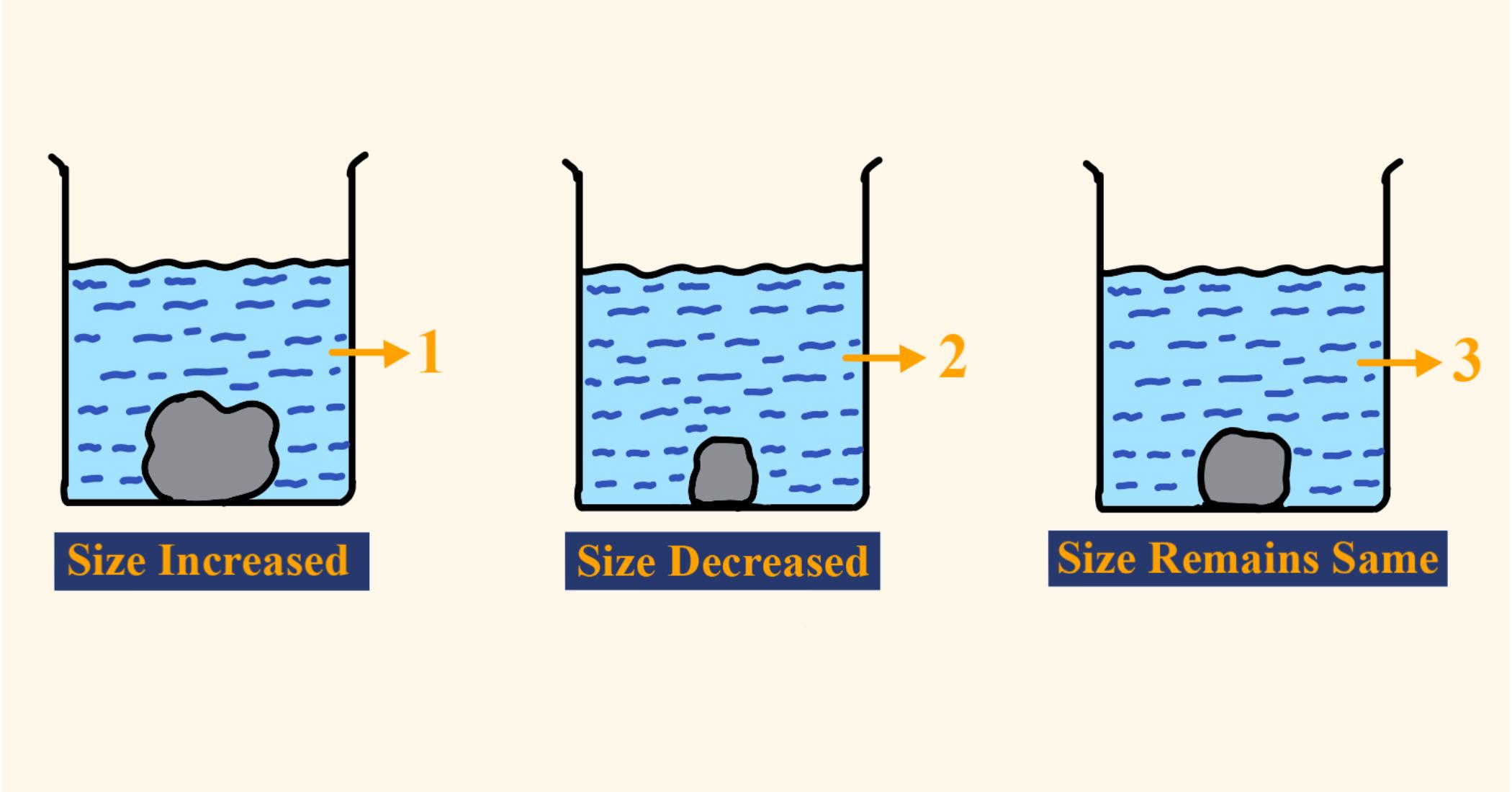 A candidate in order to study the process of osmosis has taken 3 potato cubes and put them in 3 different beakers containing 3 different solutions. After 24 hours, in the first beaker, the potato cube increased in size, in the second beaker the potato cube decreased in size, and in the third beaker, there was no change in the size of the potato cube. The following diagram shows the result of the same experiment: