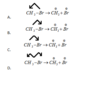 A covalent bond can undergo heterolytic bond fission. The correct representation involving a heterolytic fission of \[C{H_3}Br\] is: