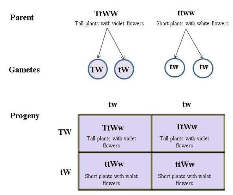 - Contrary to this, almost half of the progeny were short and the other half were tall, that means the ratio of tall and short plants is 1: 1. This result of the test cross suggests that the parent plant would be heterozygous for the plant length (I.e. Tt). So, the genotype of the tall parent will be TtWW.
